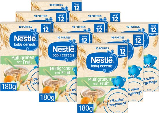 | Bijzondere Bewaarvoorschriften | Na opening de pap binnen 3 à 4 weken gebruiken. Koel en droog bewaren. Bewaar geen restjes opgewarmde voeding. Onjuiste bereiding en/of bewaring kan risico's voor de gezondheid van je kindje met zich meebrengen. Verpakt onder beschermende atmosfeer. Raadpleeg een arts of het consultatiebureau voordat je begint met het geven van bijvoeding in aanvulling op borst- en/of flesvoeding. ¹Gebruik bij voorkeur borstvoeding of de (opvolg)melk die je je kindje dagelijks geeft. Borstvoeding is de ideale voeding voor baby's. Claims op deze verpakking zijn van toepassing op 17 gram NESTLÉ baby cereals Multigranen met Fruit bereid met 160 ml opvolgmelk. Een gevarieerde evenwichtige voeding en gezonde leefstijl zijn belangrijk voor je kindje. |