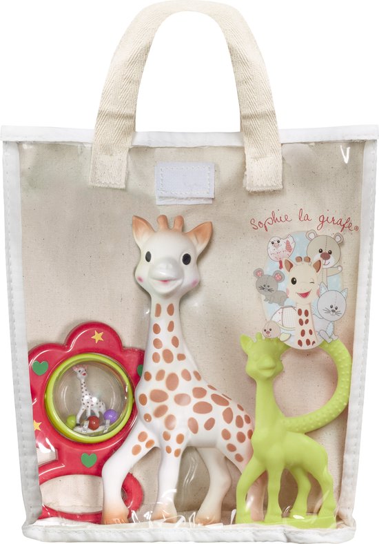 • Sophie de Giraf Rammelaar: De rammelaar voegt een speels element toe aan de ontdekkingsreis van je baby. De vrolijke geluiden zullen de nieuwsgierigheid van je kleintje stimuleren en de ontwikkeling van de zintuigen bevorderen.